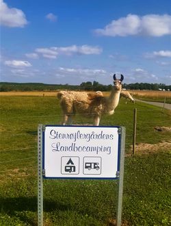 Vi har en fårebesætning på ca. 100 moderfår samt lamaer.